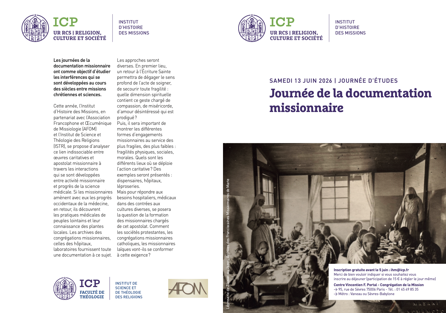 Cette année, l’Institut d’Histoire des Missions, en partenariat avec l’Association Francophone et Œcuménique de Missiologie (AFOM) et l’Institut de Science et Théologie des Religions (ISTR), se propose d’analyser ce lien indissociable entre œuvres caritatives et apostolat missionnaire à travers les interactions qui se sont développées entre activité missionnaire et progrès de la science médicale. Si les missionnaires amènent avec eux les progrès occidentaux de la médecine, en retour, ils découvrent les pratiques médicales de peuples lointains et leur connaissance des plantes locales. Les archives des congrégations missionnaires, celles des hôpitaux, laboratoires fournissent toute une documentation à ce sujet.